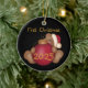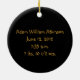 Baby's first Christmas keepsake ornament featuring a teddy bear in a red stocking cap holding a big red tree ball! You can add baby's name, date and time of birth, height and weight, and the current year to this fully customisable keepsake holiday ornament.