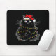 Santa Black Cat Tangled Up In Christmas Tree Light Mouse Pad