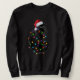 Santa Black Cat Tangled Up In Christmas Tree Light Sweatshirt