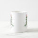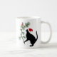 A black cat wearing a Santa hat holds an evergreen branch with a red cardinal bird on this fun holiday mug.