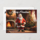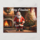 This is an AI generated image. Its Santa by a Christmas Tree in front of a roaring fire.