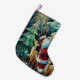 Under a twinkling starburst, Santa Claus, with his iconic red suit and billowing white beard, shares a joyful moment with his trusty reindeer amidst a sea of wrapped presents. Bring the enchanting spirit of Christmas into your home with this beautifully crafted Christmas stocking featuring Santa Claus and his reindeer. The scene captures a magical winter night, with Santa and his reindeer surrounded by twinkling stars and colourful presents. The intricate design, reminiscent of stained glass art, adds a touch of elegance and charm to your holiday decor.