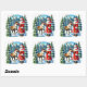 Santa Claus and Reindeer in a Snowy Forest Square Sticker