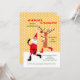 This modern design is perfect for a Christmas, winter, or December 1st Birthday party. It features two buddies, two Christmas beloved characters having fun together in the snow: Santa Claus and the reindeer, Rudolph, skating, maybe after delivering all the presents. It looks like Santa decorated Rudolph's antlers! The snow is represented by white polka-dots on soft yellow background. The blue and pink background is also available if you prefer these colours. On the back of this invitation, there’s a cute Snowman and the same polka-dots. All text is personalizable with your details and if you like you can pick another font and colour for it. Maybe you like the design but hate red and green together? It's easy to pick other colours. Problem solved! On the back, there are also white polka dots and a groovy snowman.