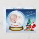 This "Special Delivery" merry Christmas snow globe photo card would be an economical way to send Merry Christmas and/or birth of baby announcement greetings to all your family and friends. Customise the text to say what you want and upload a square shaped digital photo into the blue glass and wood look snow globe filled with with snowflakes. The festive look is complete with a snow covered evening winter scene of snow and snow covered evergreen trees, along with Santa Claus and an assortment of colourful wrapped gifts, ornaments, presents, and a candy cane under the tree. If you have any questions, or need any changes, email niteowlstudio@gmail.com.