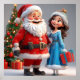 Santa Claus and Snow Maiden Celebrating Christmas Poster