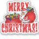 * Illustration of Santa Claus with a large toy bag and 'MERRY CHRISTMAS' text design.