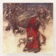 Glass Coaster featuring Arthur Rackham’s illustration Santa Claus (1907). A red robed Santa Claus carries a bag of Christmas presents in a snowy wood. Elves fly by his side. A jolly gift for Christmas!