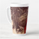 Latte Mug featuring Arthur Rackham’s illustration Santa Claus (1907). A red robed Santa Claus carries a bag of Christmas presents in a snowy wood. Elves fly by his side. A jolly gift for Christmas!