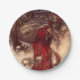 Paper Plates featuring Arthur Rackham’s illustration Santa Claus (1907). A red robed Santa Claus carries a bag of Christmas presents in a snowy wood. Elves fly by his side. A jolly gift for Christmas!