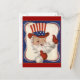 Adorable illustration in patriotic red white a blue and looking like Santa has combined himself with Uncle Sam to bring a most patriotic Christmas.