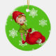 Brighten up your Christmas tree and give a touch of warmth and excitement of the holidays to your Christmas decoration with this charming circle ceramic Christmas tree ornament. Featuring an illustration of Christmas Elf pulling torn Santa Bag on white background, this charming ornament is a perfect way to commemorate the holiday season with your family and makes a great gift for all of your loved ones.