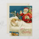 Customisable Vintage Santa Claus holding a bag full of gifts for a sleeping girl Christmas postcard.