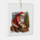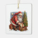 Cute Santa with a Christmas tree and gifts on a ceramic Christmas ornament. Text on back can be changed. Watercolor illustration with AI assisted graphic purchased with commercial use. Artwork: RedHeronLighthouse