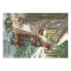 Santa's coming to town! This vintage Christmas print depicts Santa Claus carrying a Christmas Tree and knocking on a cottage door.