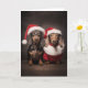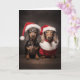 Funny picture from two dachshunds dressed up as Santa Claus ready for Christmas eve