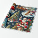 Santa Claus depicted in various joyful activities Wrapping Paper