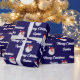 Santa Claus Gift Wrap Custom Santa Claus Merry Christmas Name, Funny Christmas Holiday gift Blue Wrapping Paper