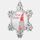 Santa Claus Gnome on Snowy Field Snowflake Pewter Christmas Ornament