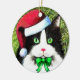 Delightful black and white cat dressed up for Christmas. Check out the back of the ornament!