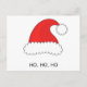 Santa Claus hat Christmas postcard. Red funny Santa's hat in cartoon style illustration card. Ho, ho, ho, Merry Christmas.