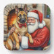 Santa Claus Holding Belgian Malinois Christmas Art Paper Plate