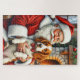 Santa Claus Holding Brittany Spaniel Christmas Art Jigsaw Puzzle