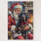 Santa Claus Holding Newfoundland Christmas Art Jigsaw Puzzle