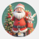 Santa Claus Holding Present with Rabbits Classic Round Sticker