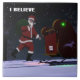 Do you believe in Santa Claus? features Santa Claus on the roof of a house after delivering presents. Customisable text reading "I BELIEVE" also appears.