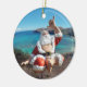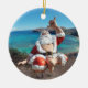 Santa Claus in Hanauma Bay Hawaii giving the "Hang Loose" sign. Merry Christas in Hawaiian language is Mele Kalikimaka.