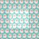 Vintage style illustrations of a Santa Claus face wearing a pink Santa hat are set against a patterned mint green background on this fabric with a retro look.