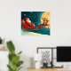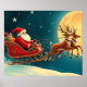 Santa Claus in sleigh with reindeer at night with full moon, popular illustration.
