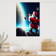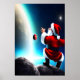 Santa Claus standing on a rock in space looking down on a alien planet. This is a AI generated art.