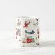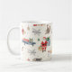 This festive Santa Claus at the Airport coffee mug features a bright watercolor illustration of Santa standing in a snowy airport surrounded by glowing Christmas lights, decorated aeroplanes, and holiday gifts ready for takeoff.