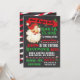 Poster inspired "Santa Claus is coming to town" one night only Christmas Party invitation on a dark chalkboard background.