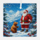 A heartwarming encounter between Santa Claus and a bear amidst snowy mountains and evergreen trees. The festive season is highlighted by vibrant colours, festive decorations, and a cheerful atmosphere.