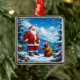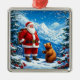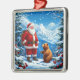 Santa Claus Meets Friendly Bear in Snowy Mountain Metal Ornament
