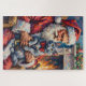 Santa Claus Oriental Blue Cat Christmas Art Jigsaw Puzzle