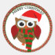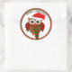 Santa Claus Owl with a red and white scarf and hat Classic Round Sticker