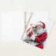 "Christmas magic is a dog’s wagging tail and Santa’s hearty laugh" and a happy illustration of Santa Claus hugging his happy cute white pitbull dog.