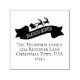 This design features a Christmas return address, a Santa Claus, with reindeer, a cute holiday, sleigh rides theme, with a festive, a simple typography, with a retro vintage, classic whimsical sign style.