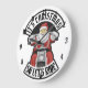 Purchased this online and it got delivered quickly. It was a present for my Dads 70th birthday. He loves clocks so decided to get him one with something written on it. Battery went in and it started working straight away. Dads had no issues with it. Printing was just how it came up online.