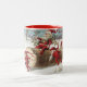Santa Claus Riding Log as Elves Push and Pull Two-Tone Coffee Mug