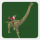 Santa Claus Riding On Brachiosaurus Square Sticker