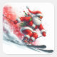 Santa Claus Skiing Down a Snowy Mountain Slope Square Sticker