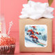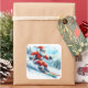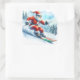 Santa Claus Skiing Down Snowy Mountains in Winter Square Sticker