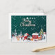 Celebrate the season with this fun postcard featuring Santa Claus, Snowman, reindeer, merry christmas snowflakes with a green background, add your message, and add your return address for easy mailing. Simple and fun, yet modern and festive, a perfect postcard for sending holiday wishes.