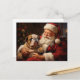 A heartwarming Christmas scene depicts Santa Claus, dressed in his iconic red suit with white fur trim, holding a english bulldog in his lap. The bulldog, with its wrinkled face and large, expressive eyes, looks up at Santa with a gentle gaze. Santa's face is full of warmth and kindness, and he appears to be smiling down at the dog. Perfect gift for Bulldog lovers.