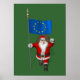 father christmas marching around in europe happily waving the blue banner with twelve golden stars